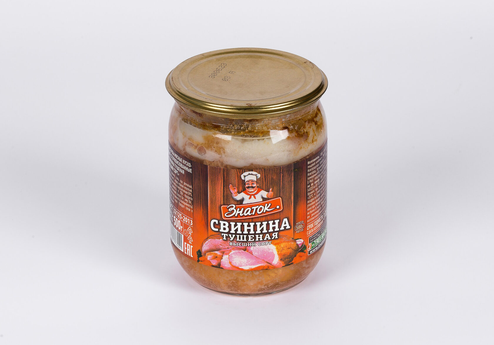 Свинина тушеная первый сорт "Утро на ферме" ГОСТ 500г с/б, в упаковке -8 шт, срок годности 3 года, температура хранения от 0 до +20